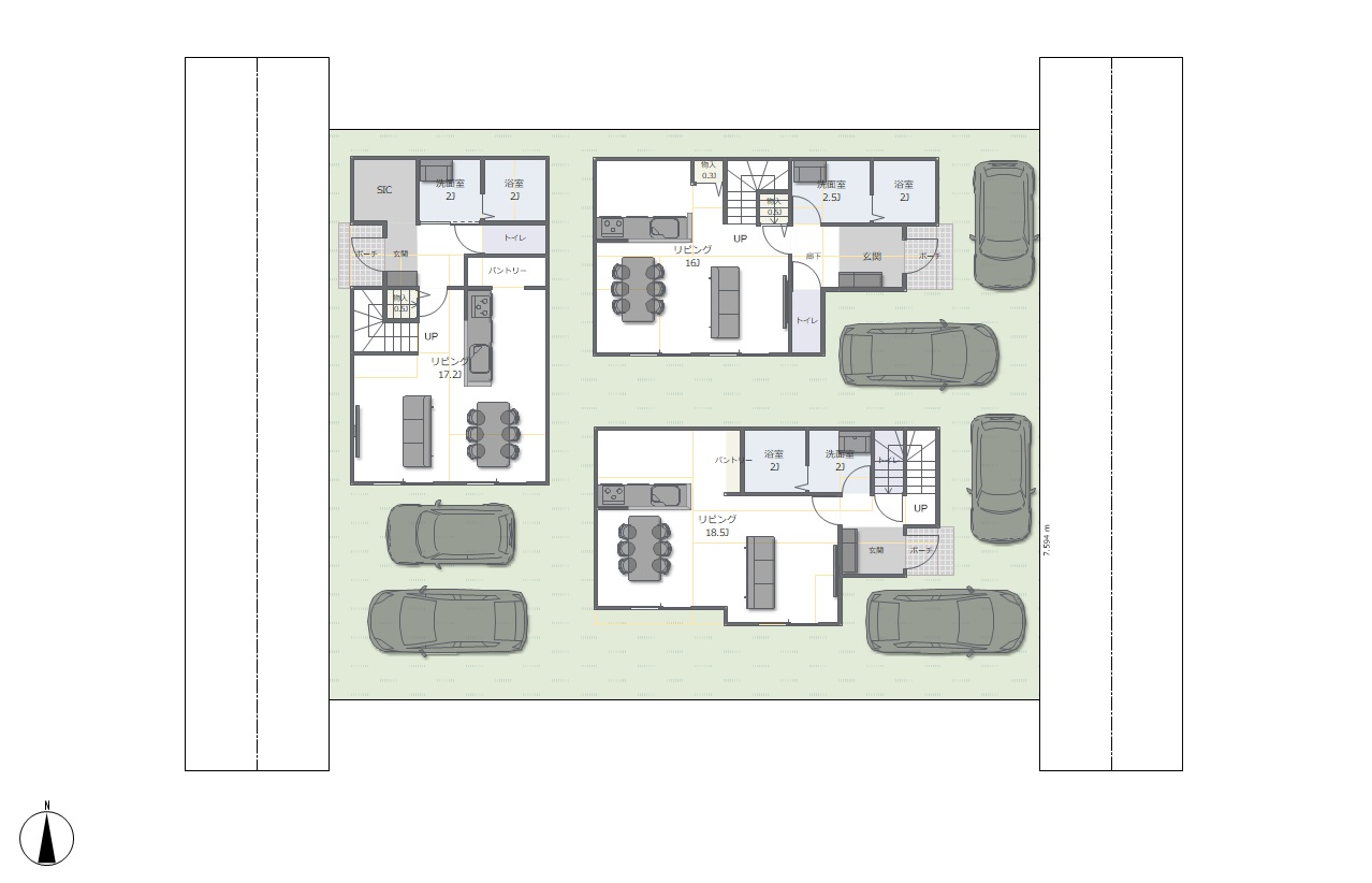 - 車は全区画2台駐車可能で、車も心もゆとりある暮らし