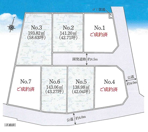 No.3区画 終了 No.2区画 終了 No.5区画138.98㎡ No.6区画143.06㎡