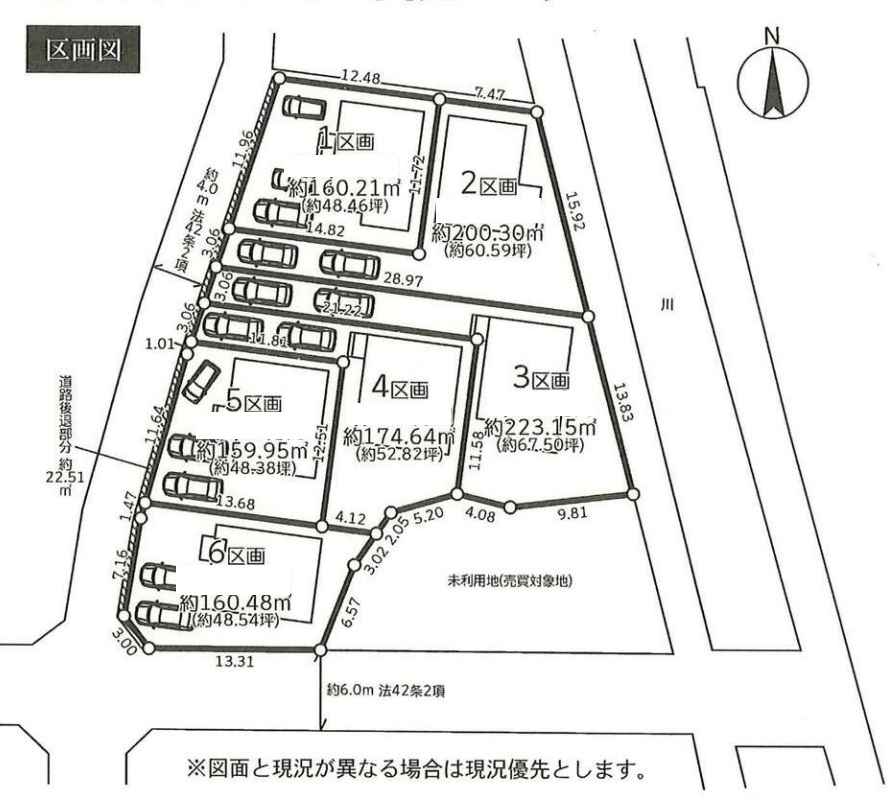 1区画約160.21㎡ 2区画約200.30㎡ 3区画約223.15㎡ 4区画約174.64㎡ 5区画約159.95㎡ 6区画約160.48㎡