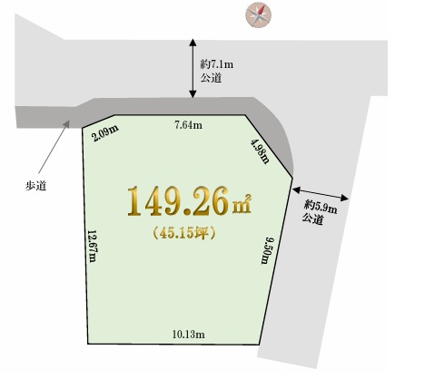 公道 北西側幅員約7.1m 北東側幅員約5.9m