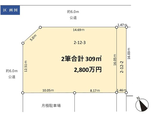 公道 北側約6m、西側約6m