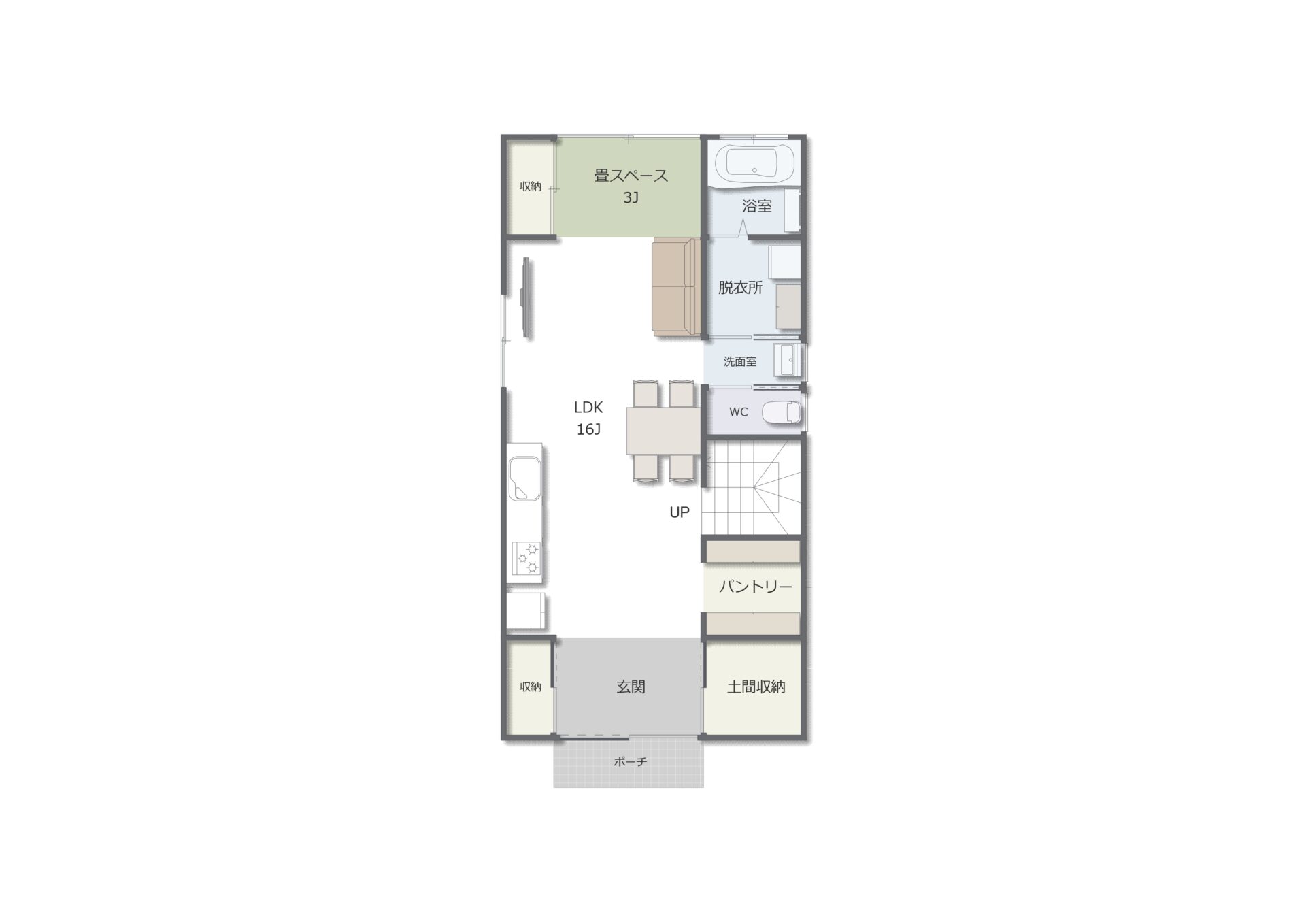- 16帖LDK+3帖畳スペースで広さと使い勝手を両立